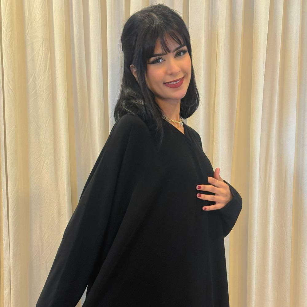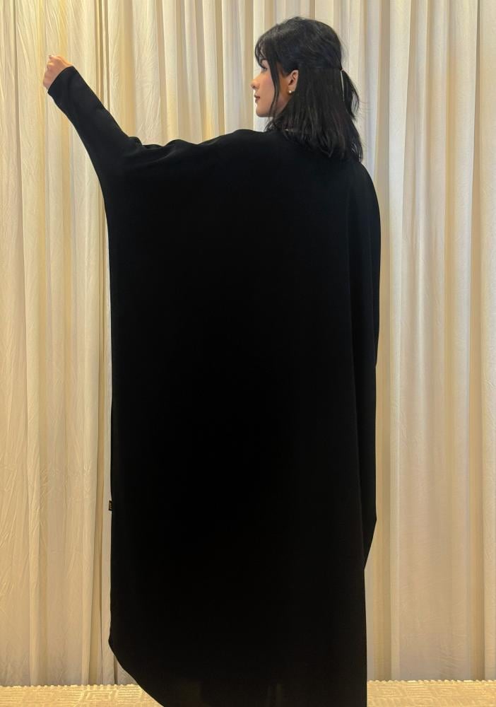 طقم عباية بشت ربع لف كم صغير طقطق الصدر فقط كريب ملكي - أسود