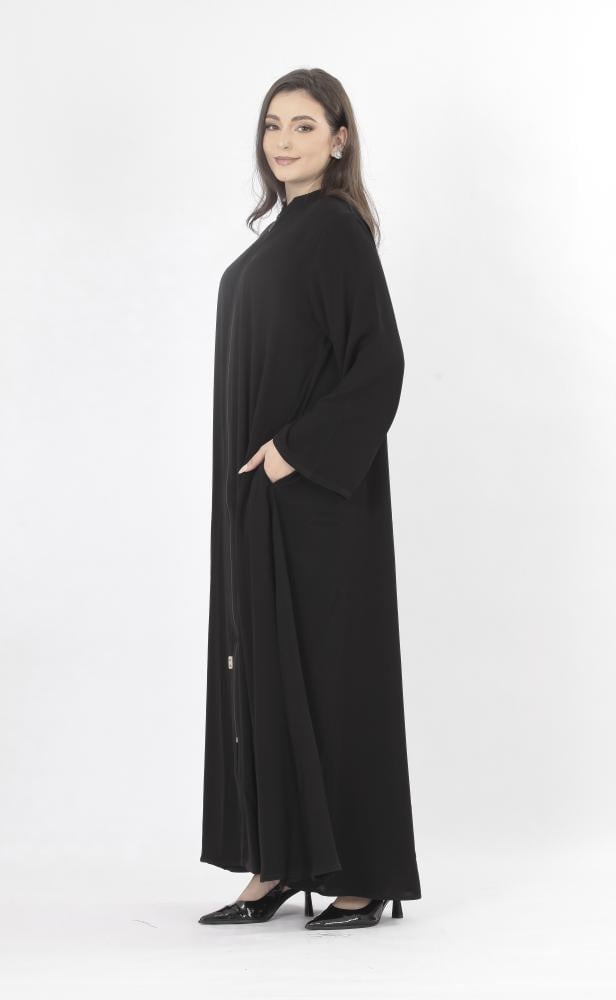 طقم عباية دبل كلوش سحاب قبة صيني كم عريض كريب ملكي - أسود