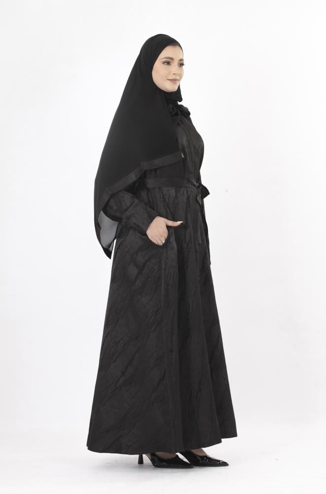 طقم عباية كلوش كم فرنسي كريب جاكار هام السحب